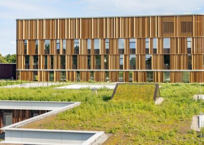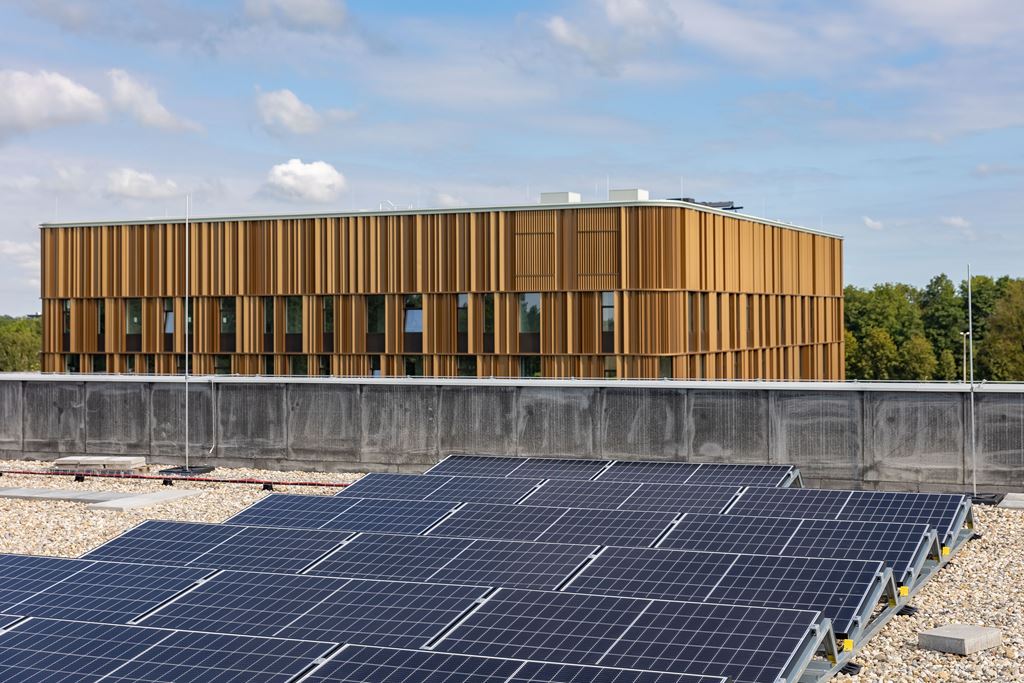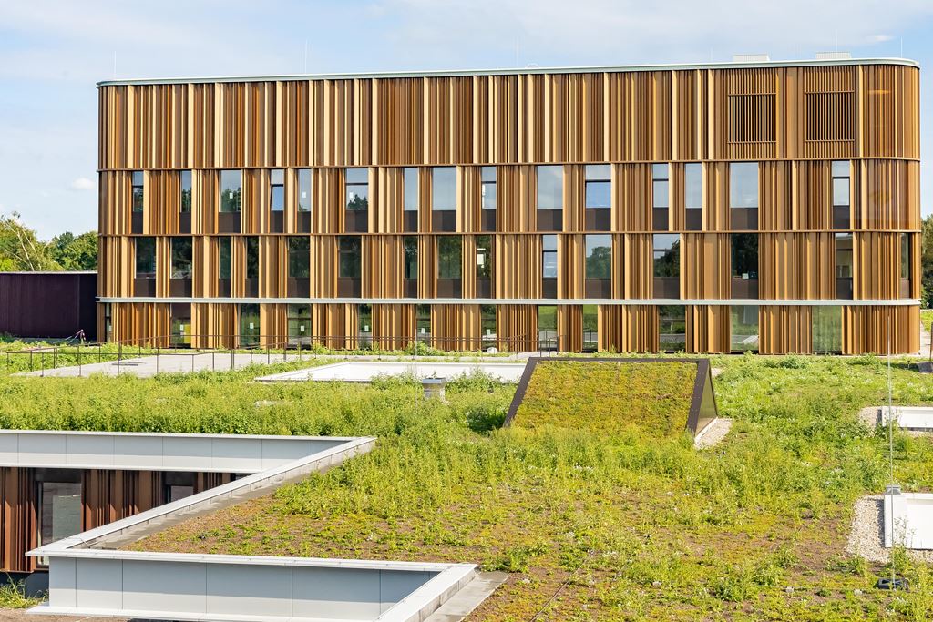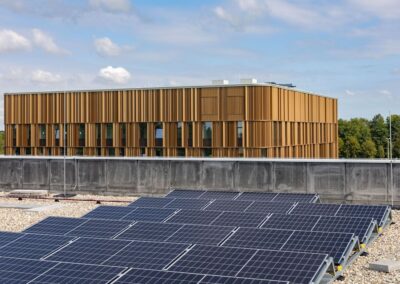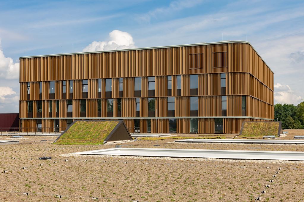 Dupral heeft in opdracht van MSP Dak en Wand BV de gebogen afwerkstukken gefabriceerd die het gebouw zijn strakke en hoogwaardige uitstraling geven.